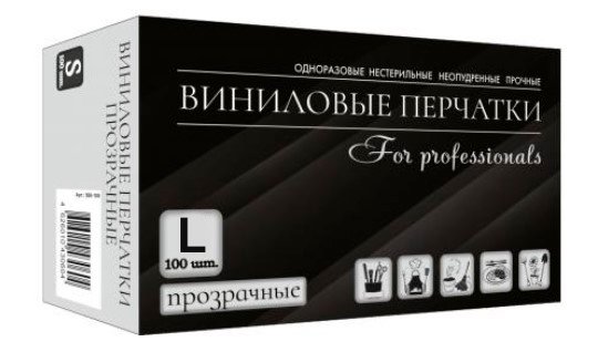 Перчатки виниловые неопудренные, нестерильные, прозрачные L,100шт./уп