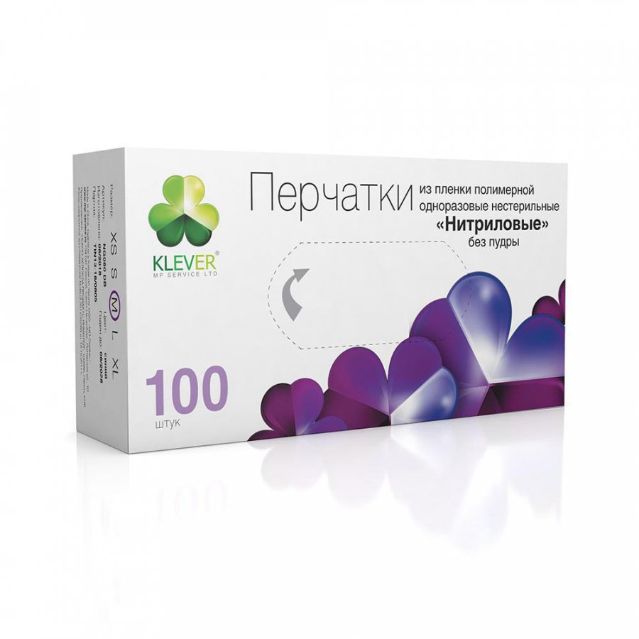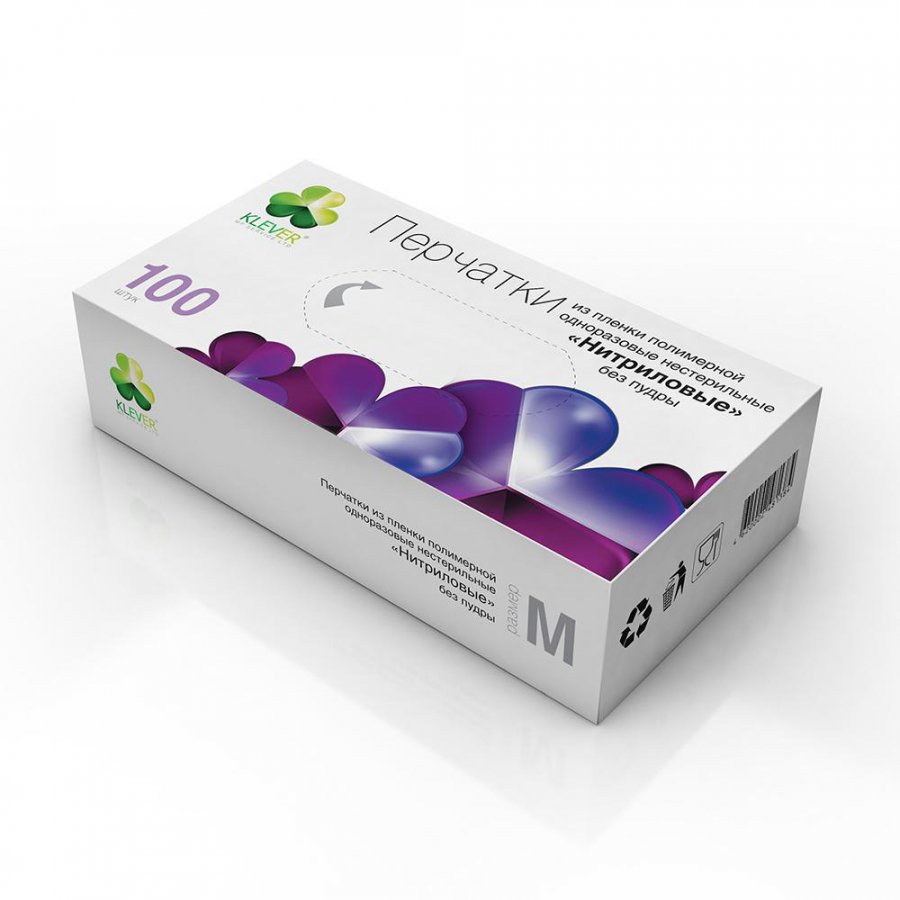 Перчатки нитриловые неопудренные, M, Интенсив, кобальт, "KLEVER" 100шт./уп
