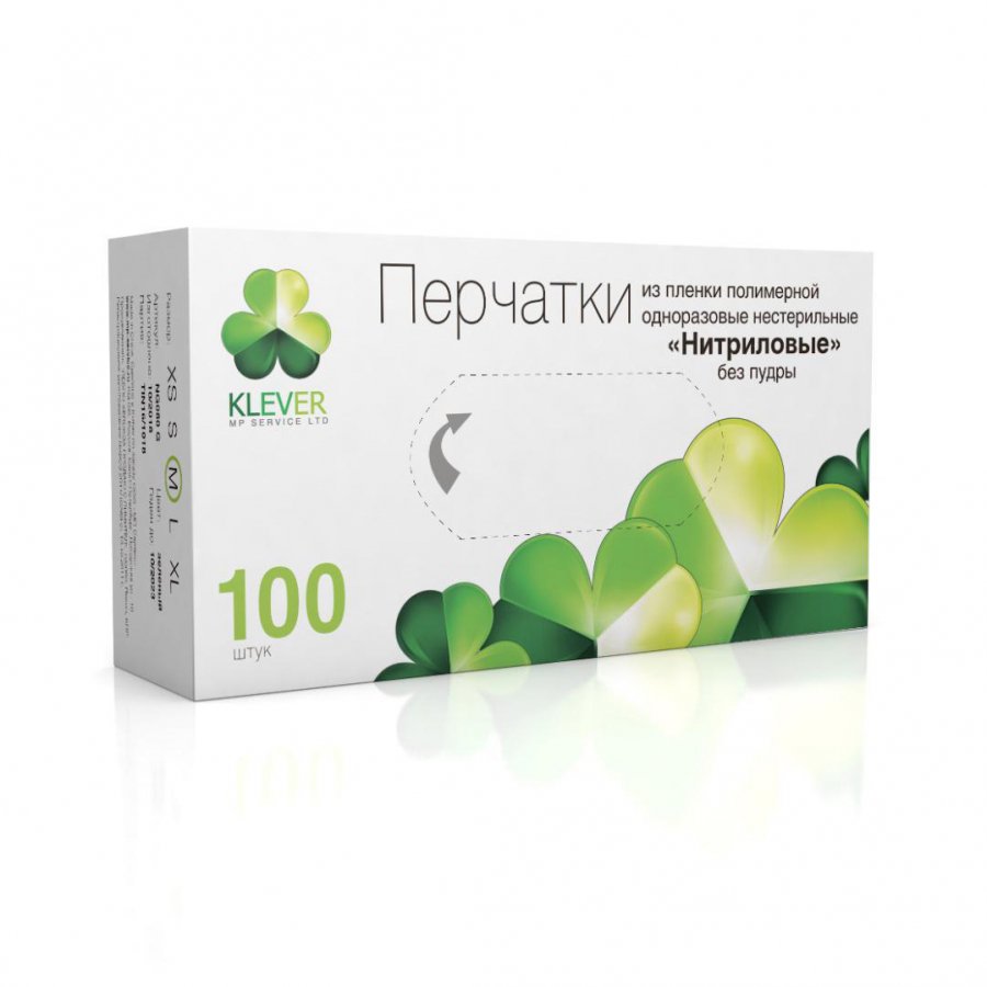 Перчатки нитриловые неопудренные, L, зеленые, "KLEVER" 100шт./уп