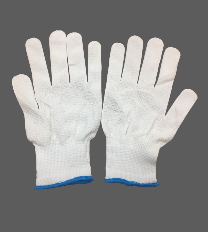 Легкие трикотажные перчатки из нейлона с точечным покрытием на ладони и пальцах.