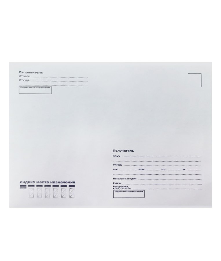 - Конверт почтовый C5, размер 162x229 мм с адресной сеткой "Куда-Кому" — используется для отправки частных писем, открыток, квитанций, деловой корреспонденции, рекламных рассылок и других типов документов.