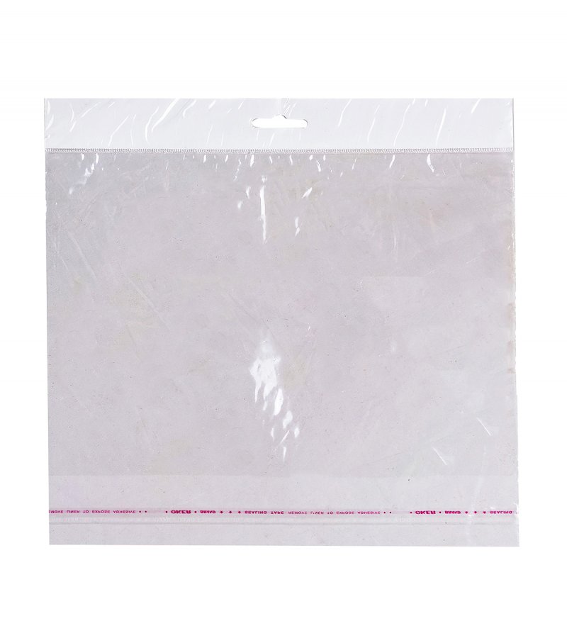 Полипропиленовый пакет 24*18см, 25мкм, с белым еврослотом, клапаном и скотчем, 100 шт./уп.