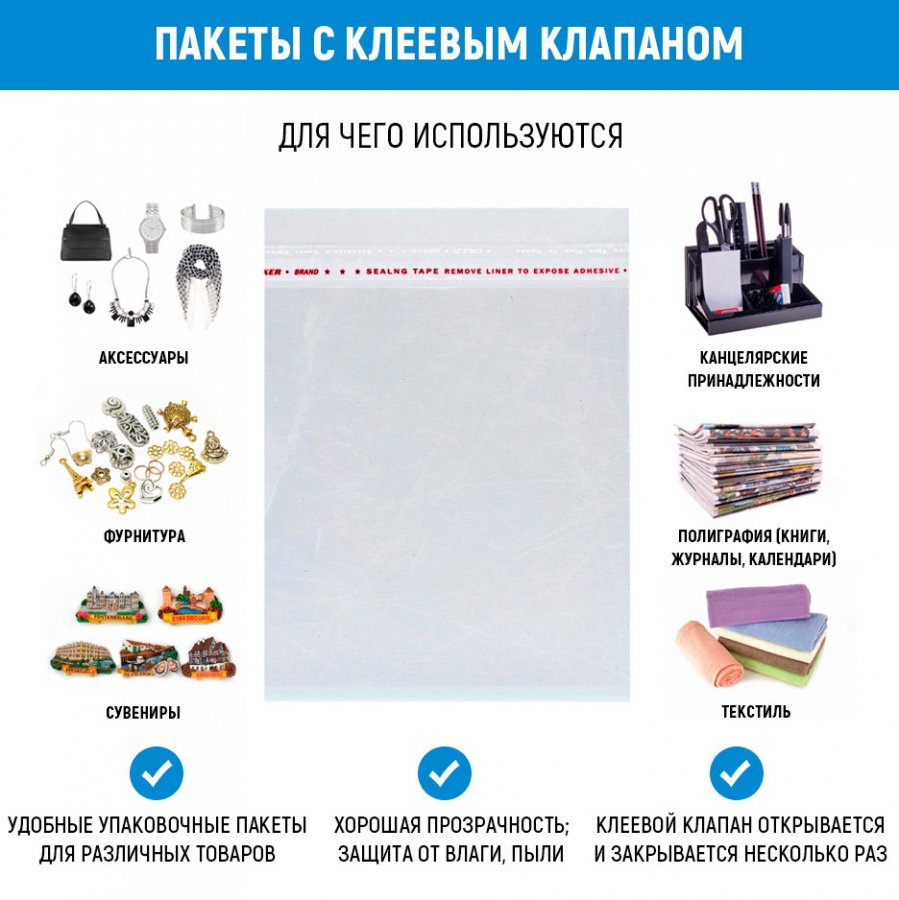 - Прозрачные полипропиленовые пакеты с клеевым клапаном - размер 15x30 см, толщина 25 мкм — универсальные в применении. Отлично подходят для фасовки одежды и текстиля, канцтоваров и косметики. Незаменимы для упаковки полиграфии, игрушек, сувениров и бижутерии, аксессуаров и запчастей и др.