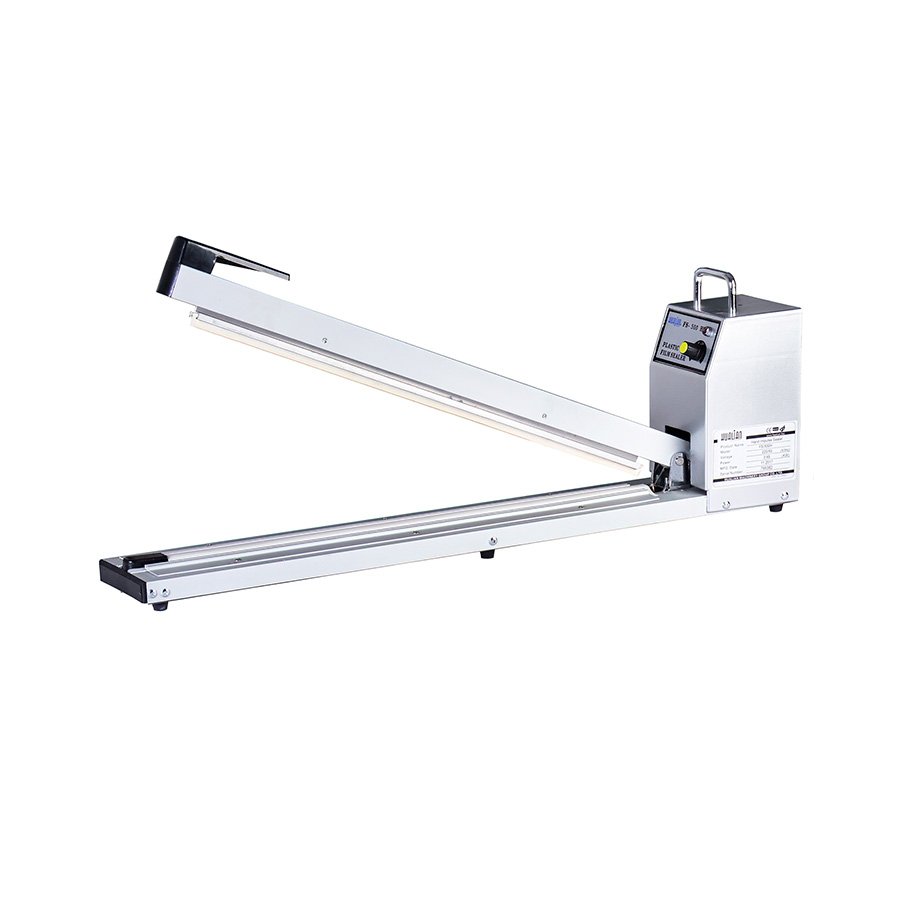 Модель FS-500H относится к серии ручных импульсных запайщиков пакетов FS-H с удлиненным плечом и является наиболее компактным в серии. Длина запаечной планки составляет 500 мм. Ширина запаечного шва – 2,8 мм. Диапазон регулирования времени нагрева 0,2-3 с. Работать с таким запайщиком несложно, так что ему не требуется обслуживание обученного оператора.