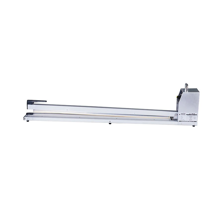 FS-800H обладает компактными габаритами. Длина запаечной планки – 800 мм, ширина шва 2,8 мм. Регулируемое время нагрева - 0.2-3 c. Работать с таким запайщиком несложно, так что ему не требуется обслуживание обученного оператора. В ремкомплект входит тефлоновая подложка, нить накаливания.