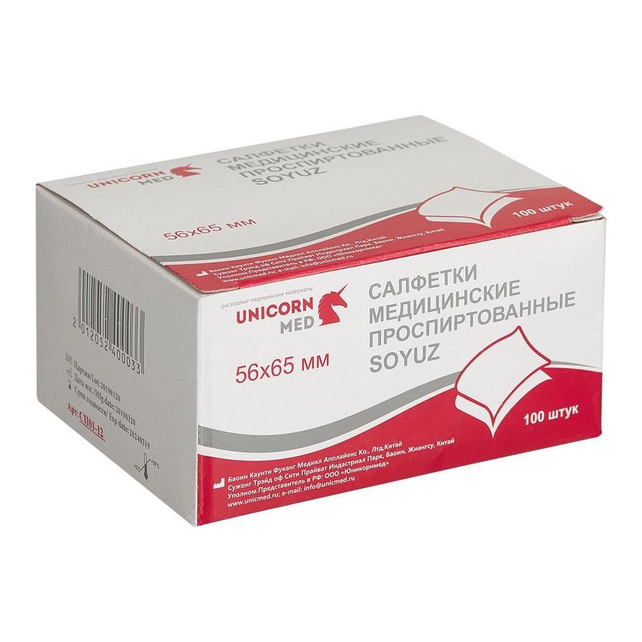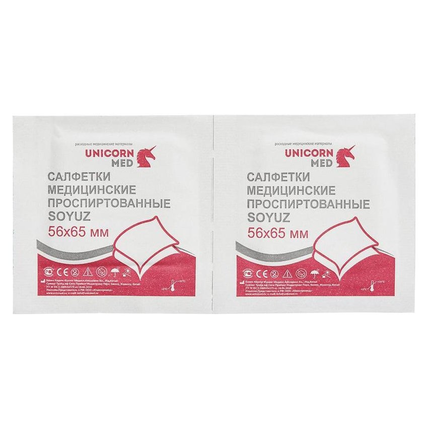 Салфетки спиртовые 56*65 в индивидуальной упаковке "SOYUZ" (100 шт./уп.)