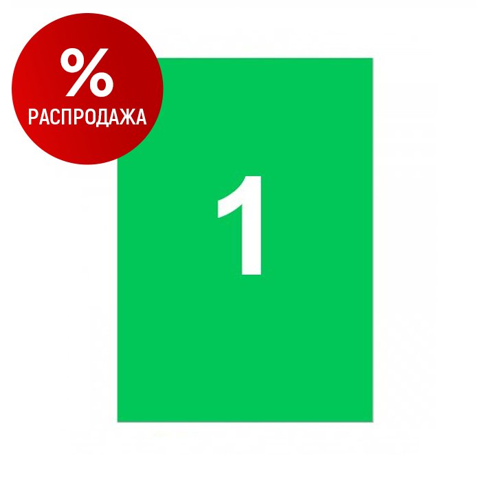 Самоклеящаяся бумага зеленая, 1 этикетка на А4, 210*297 мм (25л/уп)