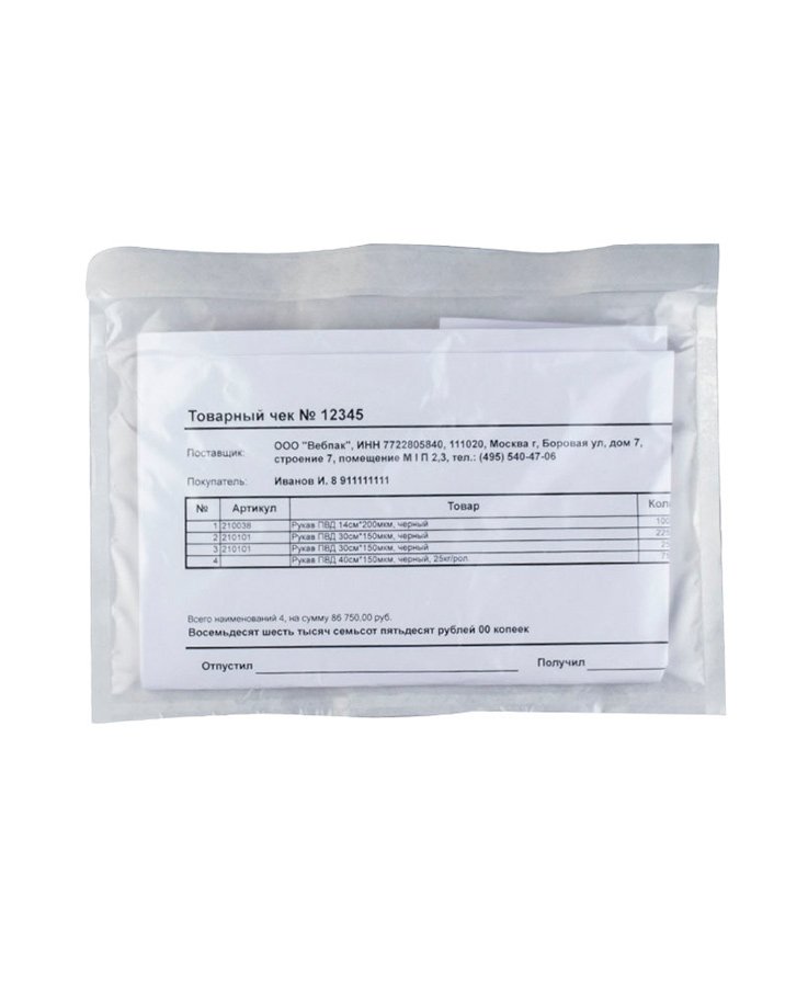 Используются при отправке грузов, посылок, бандеролей: накладные, таможенные документы, квитанции, адресные бланки - любой из этих документов можно вложить в самоклеящийся сопроводительный пакет, запечатать и приклеить его к посылке. Благодаря самоклеящемуся пакету документы будут в сохранности, а вероятность замены груза снизится.