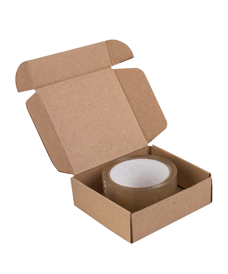 - Поставляется короб в виде выкройки, занимающей мало места, из которой ее можно легко сложить без использования клея. При необходимости закрытая коробка обматывается упаковочным скотчем.