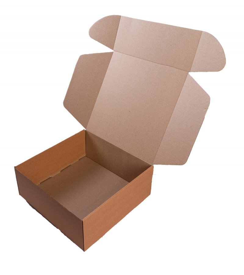 - Поставляется короб в виде выкройки, занимающей мало места, из которой ее можно легко сложить без использования клея. При необходимости закрытая коробка обматывается упаковочным скотчем.
