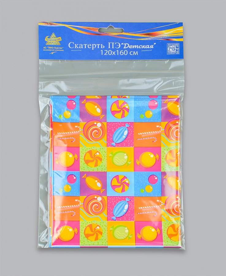 Универсальная полиэтиленовая скатерть в индивидуальной упаковке с рисунком "Детская", размер 120 на 160 см. Скатерть легкая, но в тоже время она не скользит на гладкой поверхности стола. Скатерть устойчива к загрязнениям и влаге, легко моется и быстро сохнет. Скатерть идеально подойдет для кухонного стола. Её можно взять с собой на пикник или украсить стол на летней веранде. Толщина изделия 30 мкм.