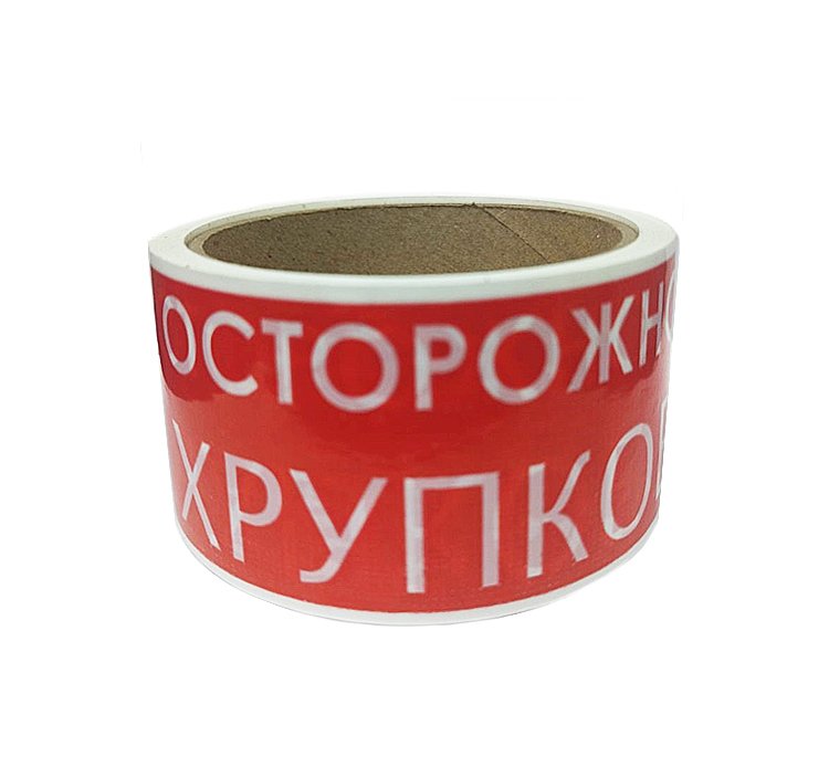 - Скотч красно-белого цвета с надписью "Осторожно хрупкое" - ширина 48 мм, длина 36 м, толщина 47 мкм. Используется для быстрой и простой маркировки различной упаковки.