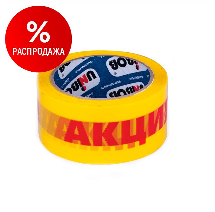 - Скотч с надписью "Акция" - ширина 50 мм, длина 66 метров, толщина 50 мкм. Используется для быстрой и простой маркировки различной упаковки - коробок, курьерских пакетов.