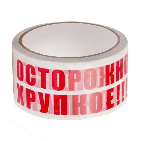 - Скотч с надписью "Осторожно хрупкое" - ширина 48 мм, длина 66 метров, толщина 50 мкм. Используется для быстрой и простой маркировки различной упаковки.
