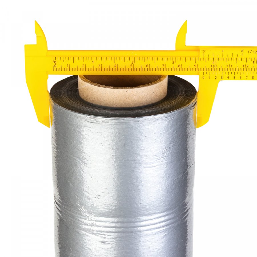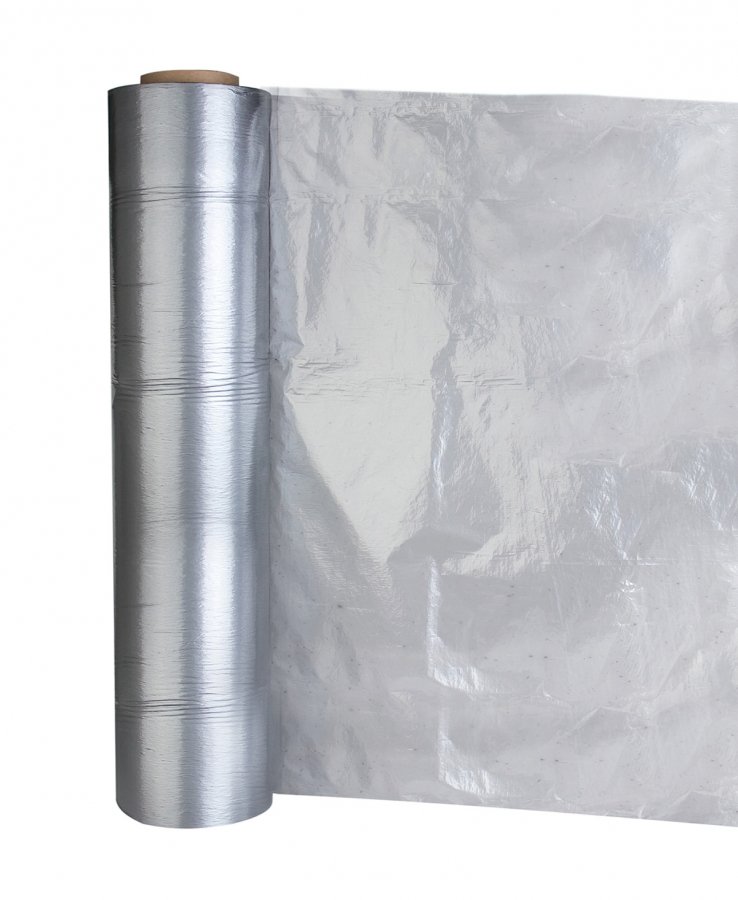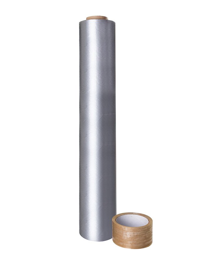 Cтрейч пленка серебряного цвета, шириной 50 см и длиной 220 метров, применяется в промышленности, на логистических предприятиях, в торговых центрах. Используется для упаковки багажа, продуктов питания, мебели, при переезде.