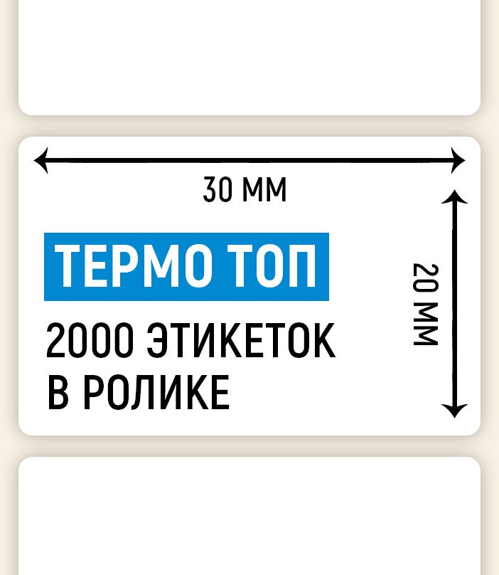 Термоэтикетка ТОП 30*20мм, 2000 шт. в ролике