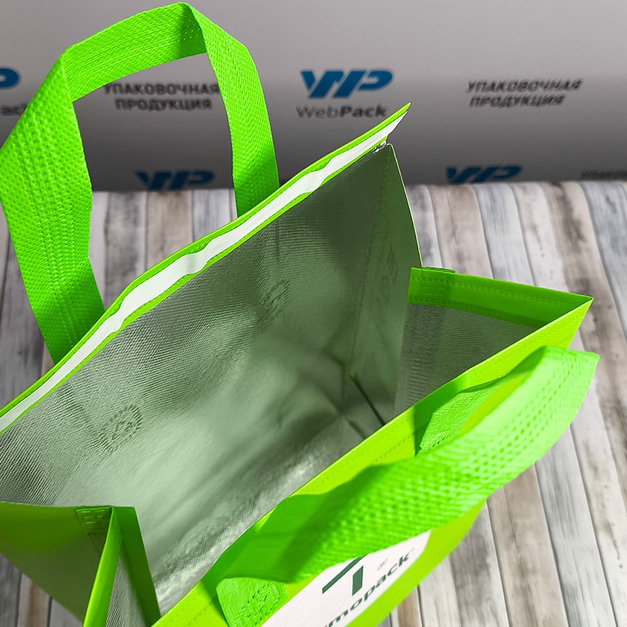 - Внешний слой - прочный изоляционный нетканый материал. Обладает влагоустойчивостью. Внутренний слой - фольгированный, удерживае t°.