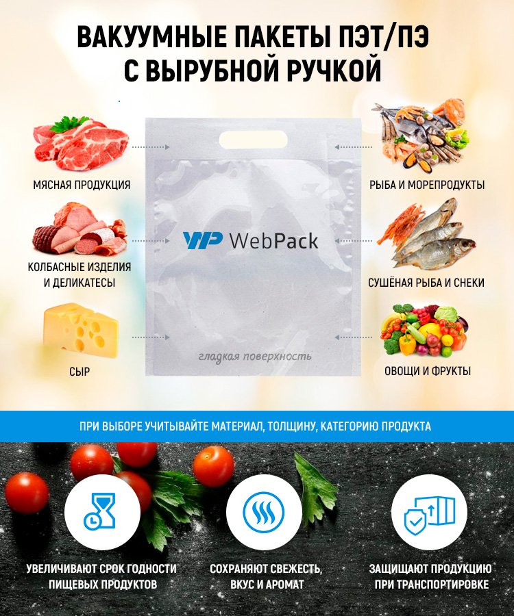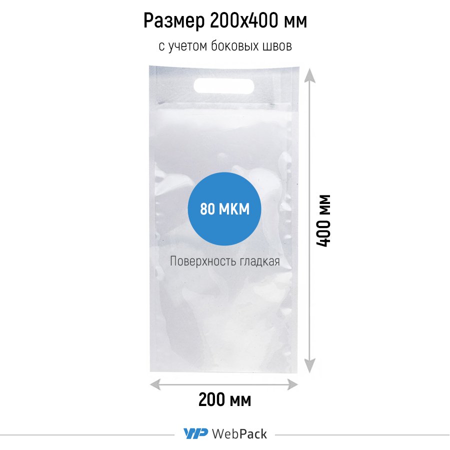 - Вакуумные пакеты ПЭТ/ПЭ c вырубной ручкой 20x40 см, толщина 80 мкм, используются для герметичной упаковки продуктов питания. Размер указан с учетом боковых швов (примерно по 0,7-1,2 см) и ручки (примерно 6 см). Полезный размер ~ 18x34 см. Поверхность пакетов гладкая, не рифленая.