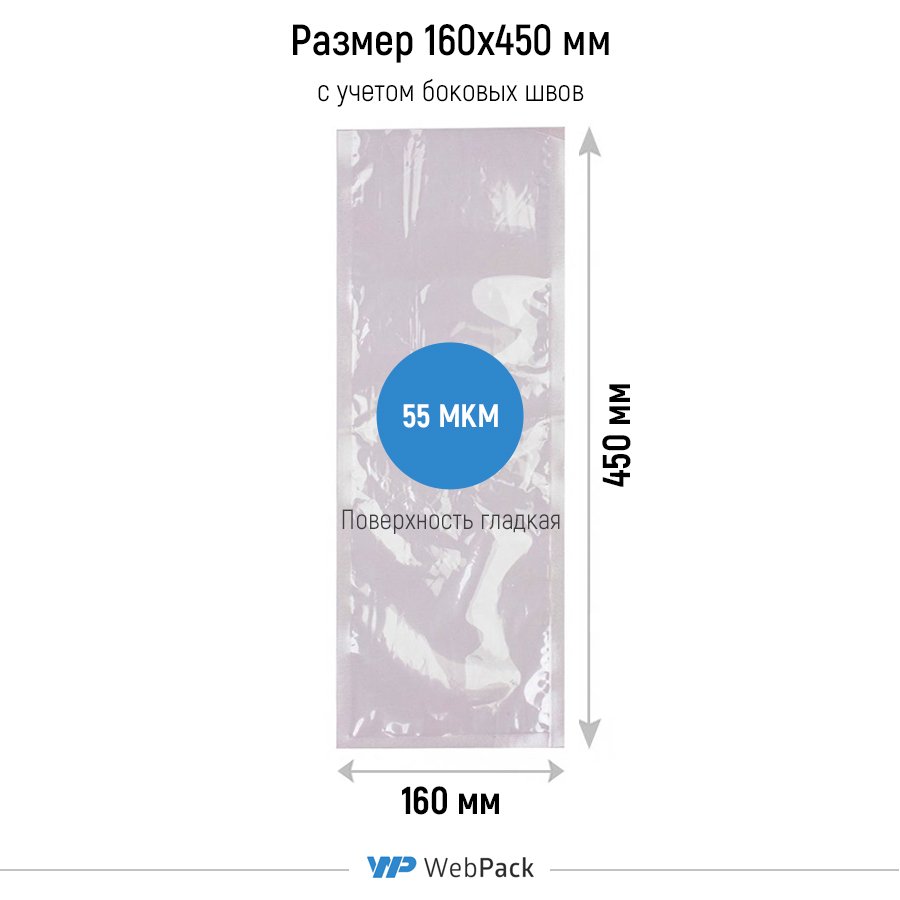 - Вакуумные пакеты ПЭТ/ПЭ 16x45см, толщина 55 мкм используются для герметичной упаковки продуктов питания. Размер указан с учетом боковых швов, которые расположены с 3-х сторон (примерно по 0,7-1,2 см). Полезный размер ~ 14x44см. Поверхность пакетов гладкая, не рифленая.