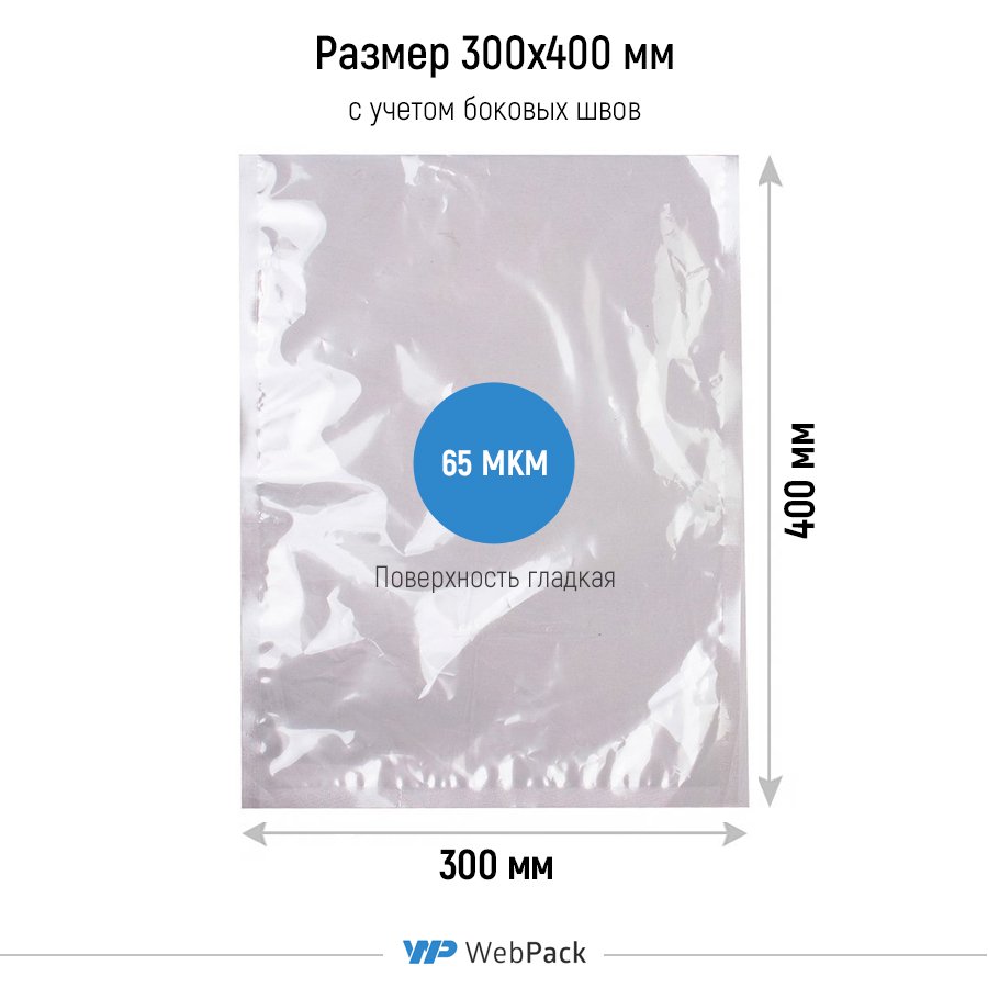 - Вакуумные пакеты ПЭТ/ПЭ 30x40см, толщина 65 мкм используются для герметичной упаковки продуктов питания. Размер указан с учетом боковых швов, которые расположены с 3-х сторон (примерно по 0,7-1,2 см). Полезный размер ~ 28x39см. Поверхность пакетов гладкая, не рифленая.