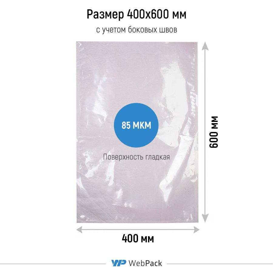- Вакуумные пакеты ПЭТ/ПЭ 40x60см, толщина 85 мкм используются для герметичной упаковки продуктов питания. Размер указан с учетом боковых швов, которые расположены с 3-х сторон (примерно по 0,7-1,2 см). Полезный размер ~ 38x59см. Поверхность пакетов гладкая, не рифленая.