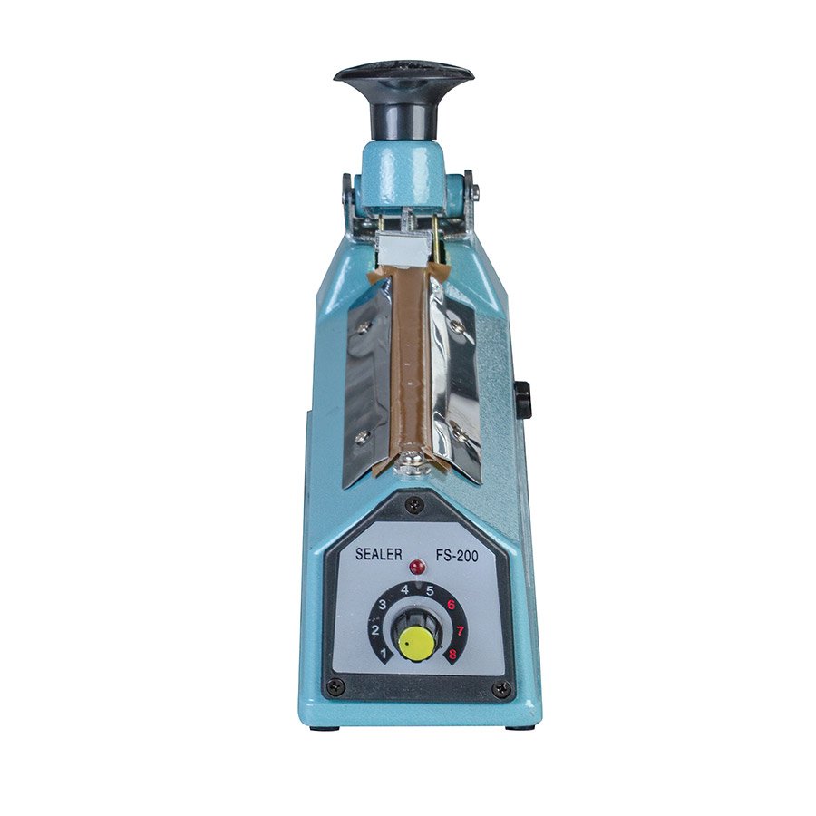 Запайщик пакетов FS-200B с функцией проставления даты в зоне шва. Имеет максимальную длину запайки 200 мм и ширину шва 8 мм. Регулируемое время нагрева - 0.2-1.3 с. Это уникальный импульсный запайщик, совмещающий в себе функции запайки пакета и одновременного проставления даты в шве методом термонагрева. В комплекте с запайщиком поставляются силиконовые литеры. При необходимости проставить дату, литеры вставляется в соответствующие круглые отверстия запаечной планки. Во время запайки пленка разогревается и литеры оставляют оттиск в шве пакета.